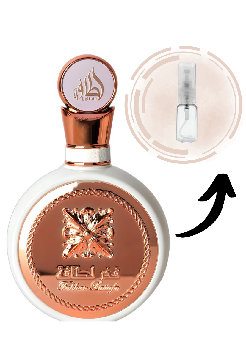 Fakhar Rose de Lattafa Perfumes é um perfume Floral Feminino. Fakhar Rose foi lançado em 2022. As notas de topo são: Frutas, Lírio, Romã e Aldeídos. As notas de coração são: Tuberosa, Jasmim, Gardênia, Ylang Ylang, Rosa, Madressilva e Peônia. As notas de fundo são: Baunilha, Almíscar Branco, Sândalo e Ambroxan.