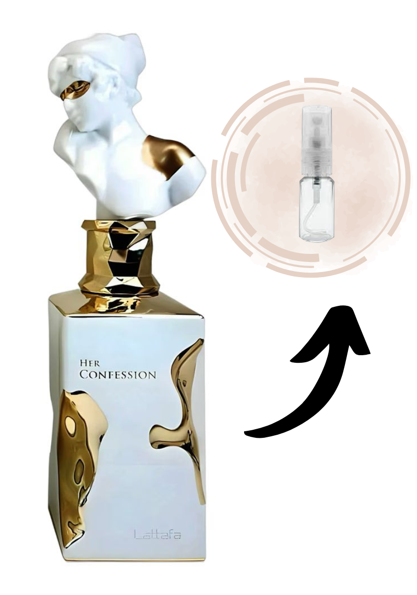 Her Confession de Lattafa Perfumes é um perfume Feminino. Esta é uma nova fragrância. Her Confession foi lançado em 2024. As notas de topo são: Canela e Mystikal. As notas de coração são: Tuberosa, Jasmim, Incenso e Mahonial®. As notas de fundo são: Baunilha, Almíscar e Fava Tonka.