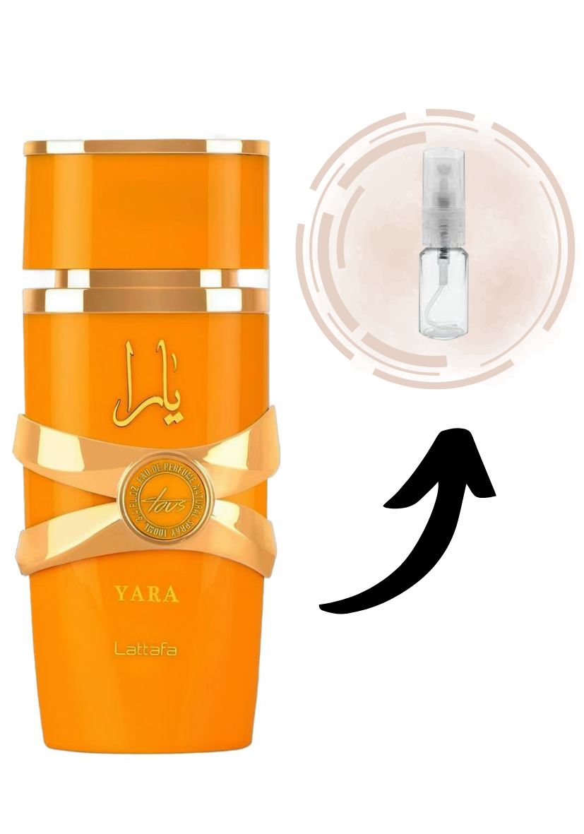 Yara Tous de Lattafa Perfumes é um perfume Feminino. Yara Tous foi lançado em 2023. As notas de topo são: Manga, Coco e Maracujá. As notas de coração são: Jasmim, Flor de Laranjeira e Heliotrópio. As notas de fundo são: Baunilha, Almíscar e Cashmeran.