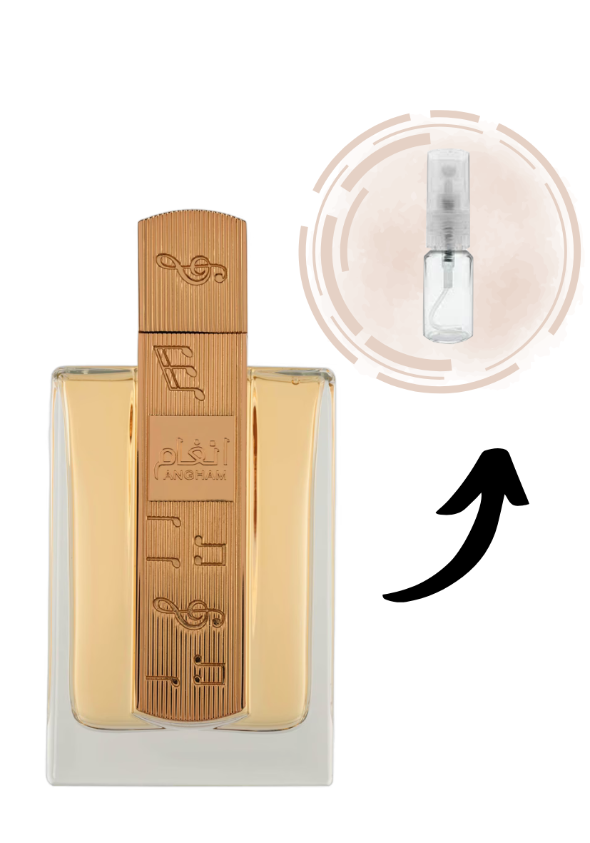 Angham de Lattafa Perfumes é um perfume Oriental Baunilha Compartilhável. Esta é uma nova fragrância. Angham foi lançado em 2024. As notas de topo são: Gengibre, Mandarina e Pimenta Rosa. As notas de coração são: Lavanda, Pralinê, Cacau e Jasmim. As notas de fundo são: Baunilha, Âmbar e Almíscar.